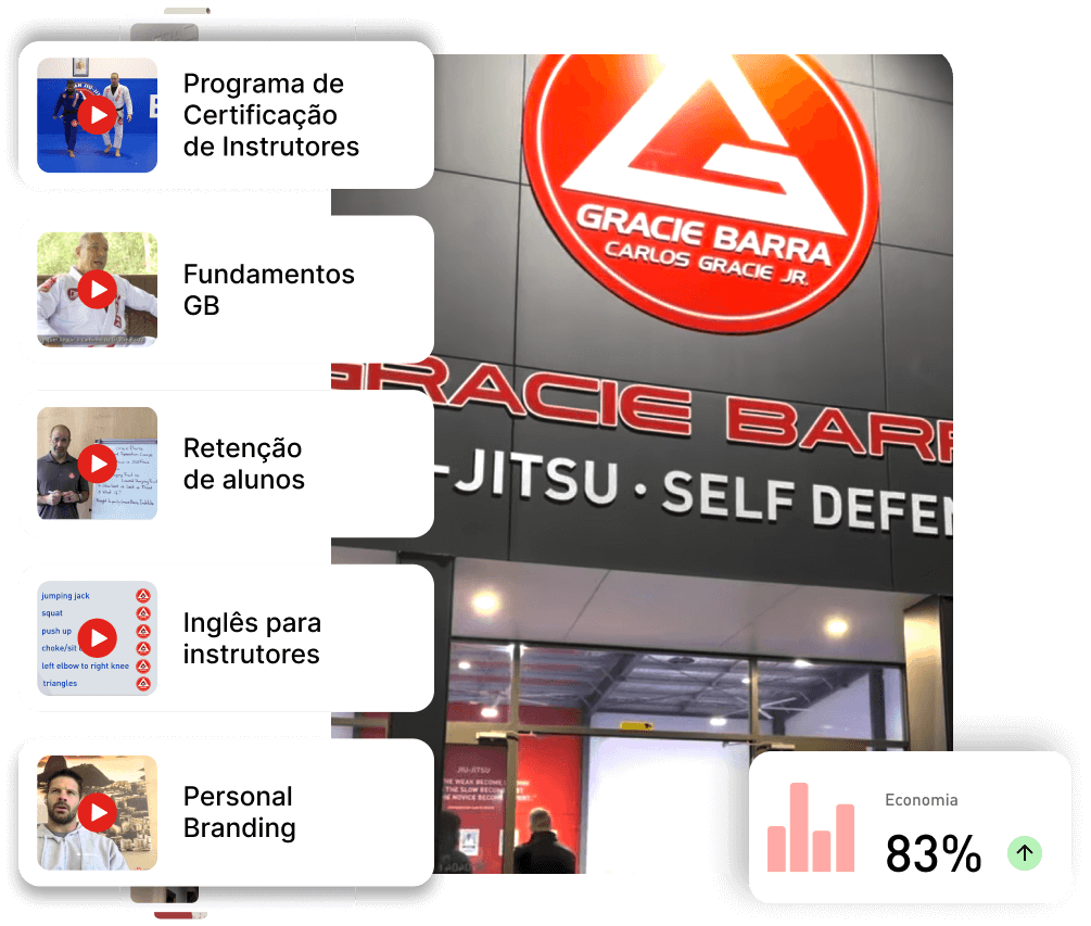Liberdade total para crescer sem se preocupar com orçamento de treinamento. Padronize toda equipe, use cursos de forma estratégica como bônus de matrícula, exigência em promoção de faixa.